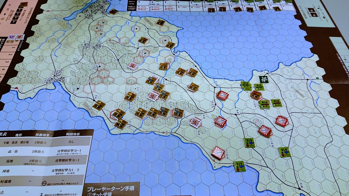 チットのドローについてはここまでも書いてきたとおり、史実要素を考慮すればいたしかたない内容なのだが、補充がほぼ効かない分、日本軍が不利に見えた。ただチットの適用については、ルール解釈の誤りがあったので是正すればもう少し日本軍の不利は解消されるかもしれない。