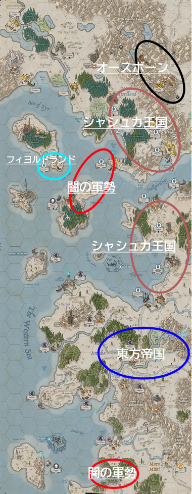 ※今回「闇の軍勢」は右上の「オースボーン」の勢力圏の下あたりに展開しました。